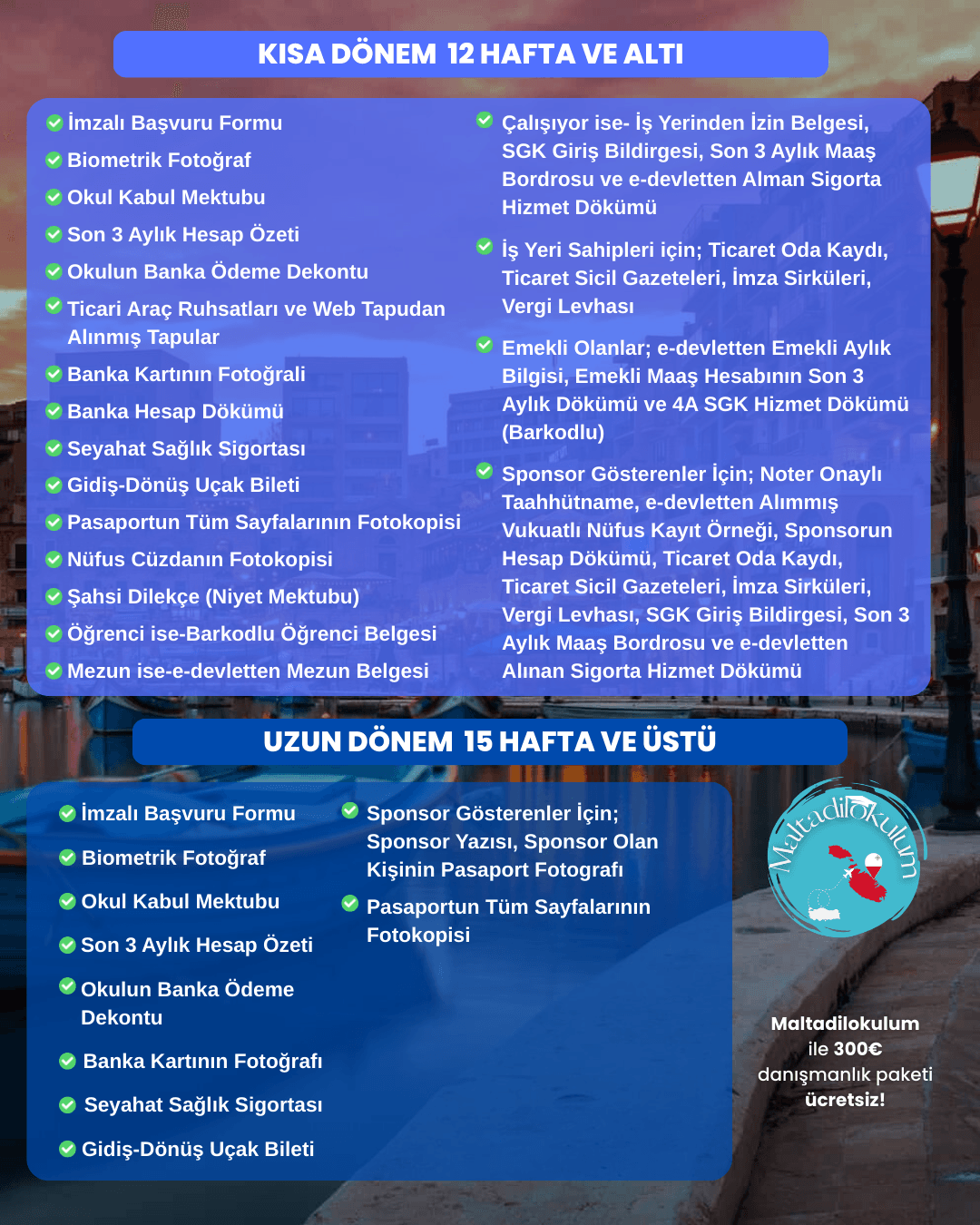 Malta Kısa Dönem ve Uzun Dönem Vize Evrak Farkları Listesi